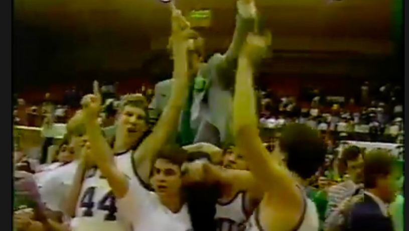 At the 1 hour, 58 minute, 51 second mark, you will see Tuttle climb up on the rim as Butte High celebrated the championship.