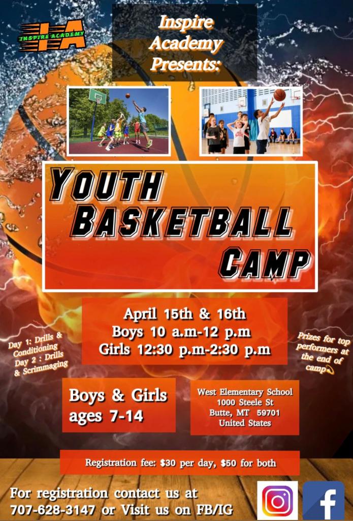 The Inspire Academy will host a two-day youth basketball camp April 15-16 at the George Foley Gymnasium at West Elementary School.
