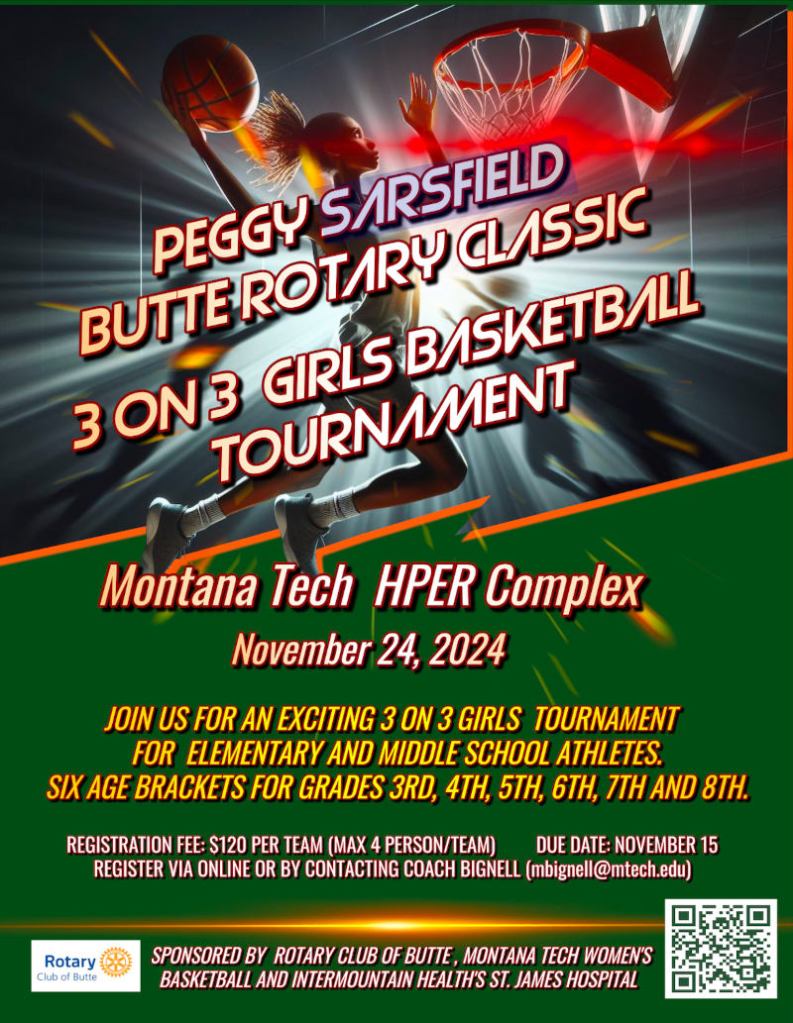 The Peggy Sarsfield Butte Rotary Classic 3 on 3 Girls’ Basketball Tournament will return to Butte on Nov. 24.