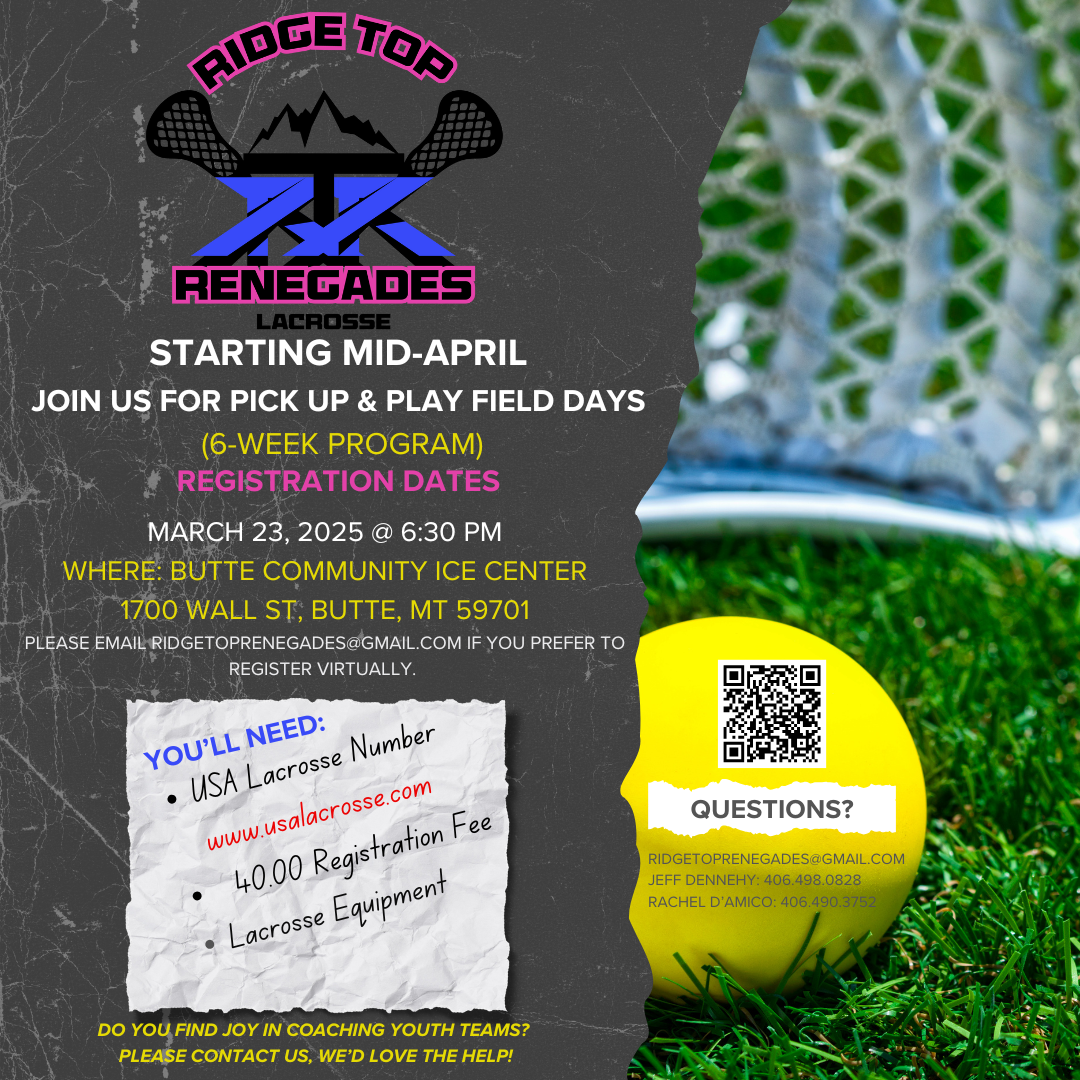Now, they are teaming up to start a new youth lacrosse program in Butte. The Ridge Top Renegades is the name of the new organization that is looking for boys and girls of all ages to play.