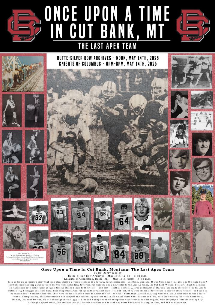 The presentation, titled “Once Upon a Time in Cut Bank, Montana: The Last Apex Team,” will mark the second time — and hopefully not the last — in which Worley was in town to talk about a Butte Central championship game.