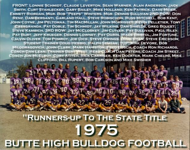 The 1975 squad was coached by Dan Peters and were the runners-up to the State title. This was Peter’s third and final season as the head Bulldog mentor.